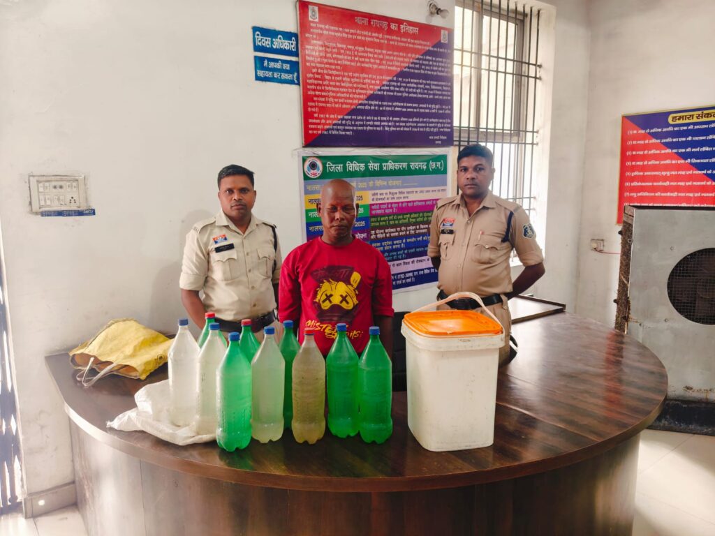थाना प्रभारी कोतवाली निरीक्षक सुखनंदन पटेल जी को सूचना मिली थी कि टिकरापारा निवासी फानू उरांव अपने घर के आंगन में प्लास्टिक बोरी में रखकर कच्ची महुआ शराब बेच रहा है। सूचना पर थाना प्रभारी द्वारा टीम रवाना की गई। पुलिस टीम मौके पर पहुंची तो फानू उरांव पिता बुटिया उरांव उम्र 46 वर्ष निवासी टिकरापारा रायगढ़ अपने घर के आंगन में प्लास्टिक बोरी और थैले लेकर बैठा मिला। पूछताछ पर उसने शराब बिक्री की बात स्वीकारी, जिसके बाद उसके कब्जे से 25 लीटर हाथ भट्ठी से तैयार कच्ची महुआ शराब और बिक्री रकम ₹230 भी बरामद की गई। आरोपी फानू उरांव का कृत्य आबकारी अधिनियम की धारा 34(2), 59(क) के तहत अपराध पाए जाने पर उसे गिरफ्तार कर न्यायिक अभिरक्षा में भेजा गया है।