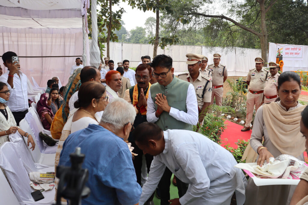 वित्त मंत्री श्री चौधरी ने शहीदों के सर्वोच्च बलिदान और कर्तव्यनिष्ठा को नमन करते हुए कहा कि समाज और देश की सुरक्षा के लिए अपने प्राणों की आहुति देने वाले पुलिसकर्मियों का बलिदान कभी भुलाया नहीं जा सकता। उन्होंने बताया कि जिले के कई शहीदों के नाम पर स्टेडियम और उद्यानों का नामकरण किया जा चुका है तथा शेष शहीदों के नाम पर भी प्रमुख स्थलों का नामकरण किया जाएगा, ताकि आने वाली पीढ़ियां भी उनके योगदान को याद रख सकें। समारोह में उन्होंने शहीदों के परिजनों को शॉल और श्रीफल भेंट कर सम्मानित किया। इस अवसर पर उन्होंने परिजनों के प्रति अपनी संवेदना प्रकट की और उन्हें हरसंभव सहयोग का आश्वासन दिया। कार्यक्रम में लोकसभा सांसद श्री राधेश्याम राठिया, राज्यसभा सांसद श्री देवेन्द्र प्रताप सिंह, नगर निगम रायगढ़ के महापौर श्री जीवर्धन चौहान उपस्थित रहे।