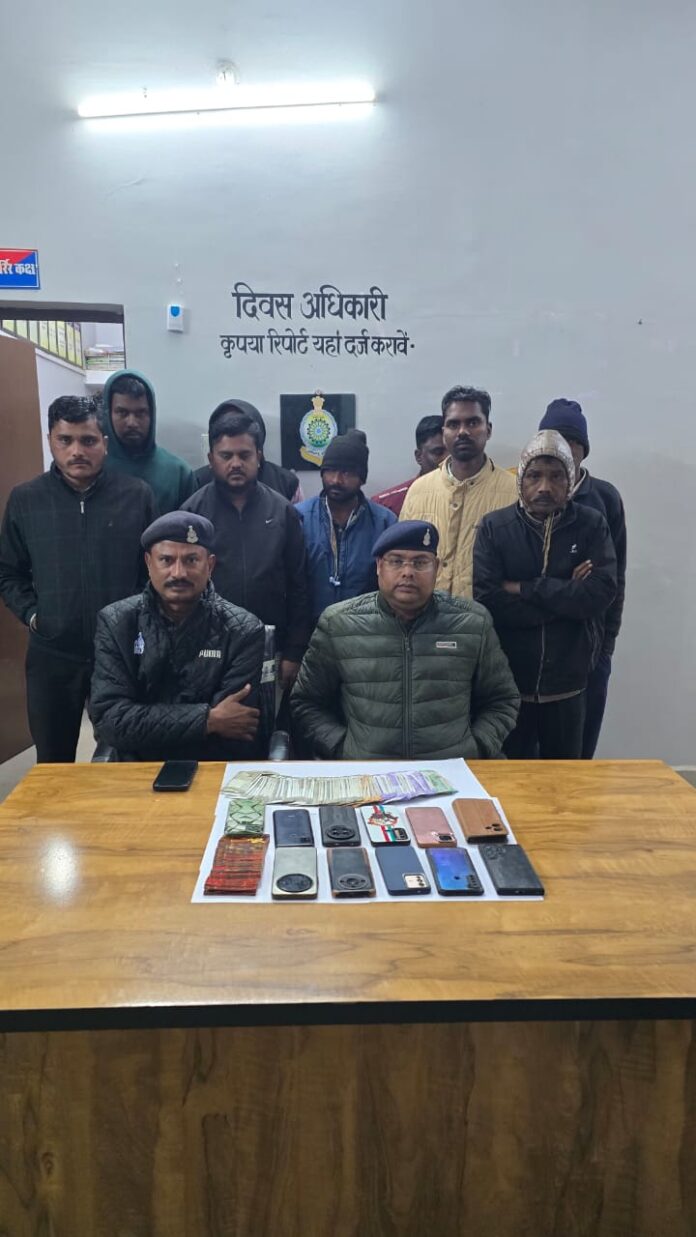 मरवाही पुलिस की जुआ के खिलाफ बड़ी कार्रवाई, करते हुए 11 आरोपी को गिरफ्तार, किया गया साथ ही उनके पास से 33,500/- रुपए नगदी के साथ 11 नग मोबाइल फोन और 06 नग मोटर साइकिल को भी जप्त किया गया