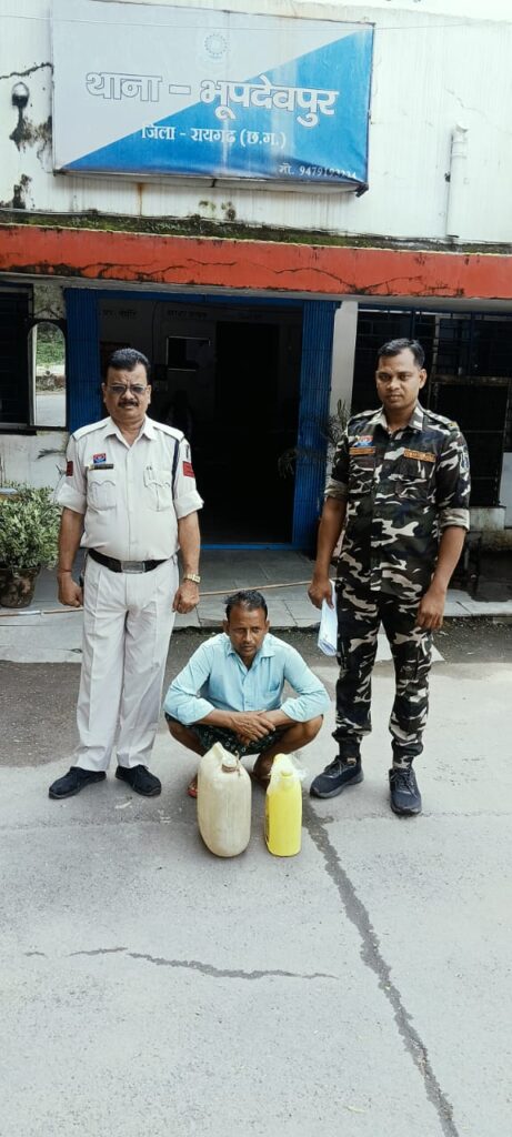 महिला समूह की सूचना पर भूपदेवपुर पुलिस की टीम द्वारा ग्राम बिंजकोट में छापेमारी, कर अवैध शराब बनाने वाले एक आरोपी को गिरफ्तार कर उससे 15 लीटर महुआ शराब को जब्त किया गया