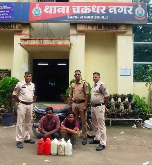 रायगढ़, 23 सितंबर । जिले में अवैध शराब पर नकेल कसने चलाए जा रहे अभियान के तहत चक्रधरनगर पुलिस ने सोमवार को कार्रवाई करते हुए मोटरसाइकिल से शराब परिवहन कर रहे दो युवकों को गिरफ्तार किया है। आरोपियों के कब्जे से 25 लीटर कच्ची महुआ शराब और प्रयुक्त मोटरसाइकिल जप्त की गई है।