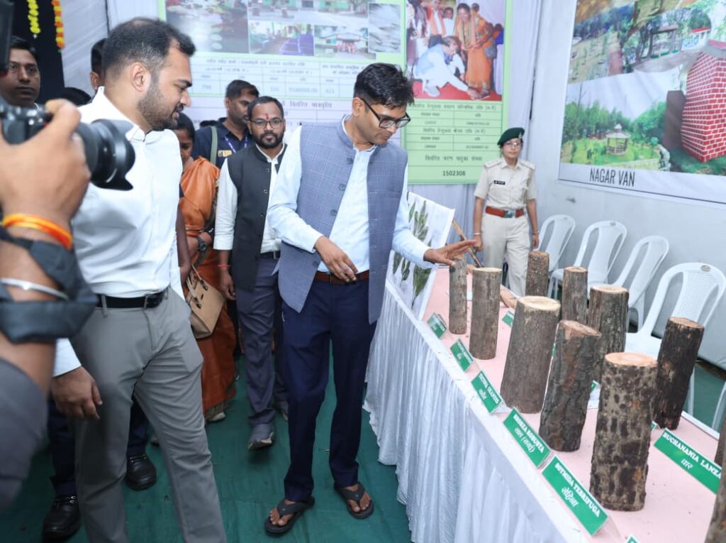 वित्त मंत्री ने कृषि विभाग में मूंगफली की उन्नत फसल, उद्यान विभाग में पाम ऑयल उत्पादन, ग्रामोद्योग में कोसा उत्पाद, वन विभाग में वनोपज आधारित मॉडल तथा आदिमजाति विभाग में कर्मयोगी अभियान और पीएम जनमन योजना से सजे स्टालों का अवलोकन किया। उन्होंने पुलिस विभाग के साइबर अभियान, अक्षय ऊर्जा विभाग के सोलर ड्यूल पंप मॉडल और नगर पालिक निगम द्वारा प्रदर्शित नालंदा परिसर मॉडल की विशेष सराहना की। इस दौरान उन्होंने महिला एवं बाल विकास विभाग द्वारा तैयार रागी केक का स्वाद चखा और “बेटी बचाओ, बेटी पढ़ाओ” हस्ताक्षर अभियान में बेटियों के लिए संदेश लिखा। वित्त मंत्री ने स्वच्छता सेल्फी प्वाइंट में फोटो खिंचवाते हुए स्वच्छता के प्रति जनजागरूकता का संदेश भी दिया।