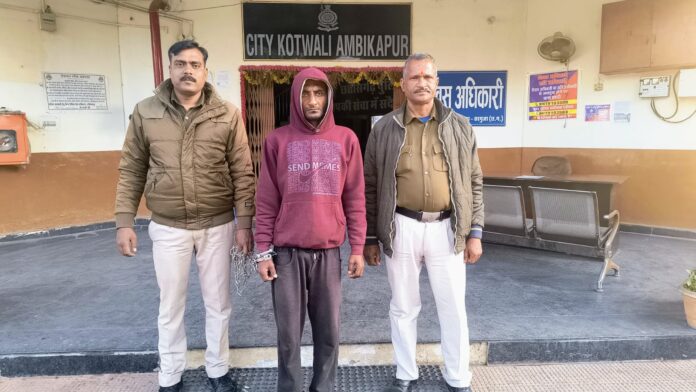 पंजीबद्ध कर विवेचना में लिया गया। विवेचना दौरान थाना अम्बिकापुर एवं साइबर सेल की संयुक्त टीम द्वारा आरोपी की पता तलाश की जा रही थी। CCTV फुटेज एवं तकनीकी संसाधनों के सहयोग से आरोपी की पहचान आकाश अग्रवाल के रूप में की गई पुलिस टीम द्वारा आकाश अग्रवाल उर्फ़ कल्लू पिता रोशन लाल 31 वर्ष पता ब्रम्ह रोड शीतला वार्ड अंबिकापुर को हिरासत में लेकर पूछताछ किया गया। जिसने अपना जुर्म स्वीकार किया। आरोपी की गवाहों के समक्ष तलाशी ली गई जो घटना में प्रयुक्त वेल्डिंग मशीन, प्लायर वायर कटर, वेल्डिंग रॉड, टार्च, वायर एक्सटेंशन, इत्यादि ज़ब्त कर विधिवत कार्रवाई करते हुए आरोपी को गिरफ़्तार कर न्यायिक रिमाण्ड पर भेजा गया है। आरोपी की पतासाजी एवं गिरफ़्तारी में पुलिस टीम थाना प्रभारी कोतवाली अंबिकापुर श्री शशिकांत सिन्हा जी, सहायक उप निरीक्षक श्री अजीत कुमार मिश्रा जी, प्रधान आरक्षक भोजराज पासवान, जी जयदीप सिंह,जी आरक्षक मनीष सिंह,जी जितेश साहू, जी रमेश राजवाड़े, जी अमित विश्वकर्मा जी, नितिन सिन्हाजी की महत्वपूर्ण भूमिका रही,