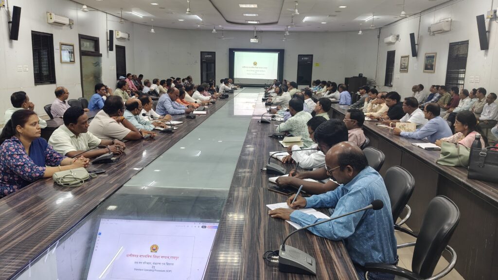 रायगढ़, 4 अप्रैल 2026/ माध्यमिक शिक्षा मंडल, रायपुर द्वारा आयोजित हायर सेकेंडरी स्कूल सर्टिफिकेट परीक्षा 2026 के अंतर्गत कक्षा 12वीं की हिंदी विशिष्ट विषय की 23 मार्च 2026 को संपन्न हुई परीक्षा को मंडल द्वारा निरस्त कर दिया गया है। अब यह परीक्षा पुनः 10 अप्रैल 2026 को जिले के सभी निर्धारित परीक्षा केंद्रों में आयोजित की जाएगी। परीक्षा के सुचारू, निष्पक्ष एवं पारदर्शी संचालन को सुनिश्चित करने के उद्देश्य से आज रायगढ़ जिले के सृजन सभा कक्ष में सभी 100 परीक्षा केंद्रों के लिए नियुक्त केंद्राध्यक्षों का एक दिवसीय विशेष प्रशिक्षण कार्यक्रम आयोजित किया गया।